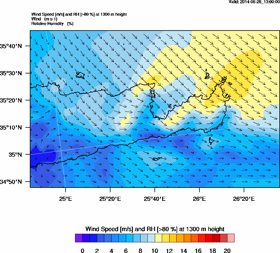 Graph 4: arw054.png - Wind Speed [m/s] and RH [>80%] at 1300 m height