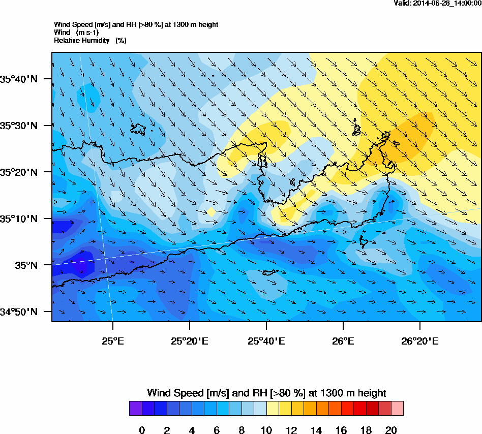Graph 4: arw059.png - Wind Speed [m/s] and RH [>80%] at 1300 m height
