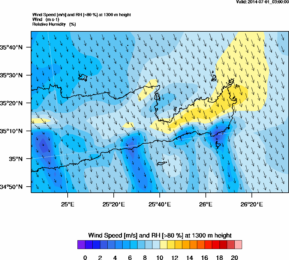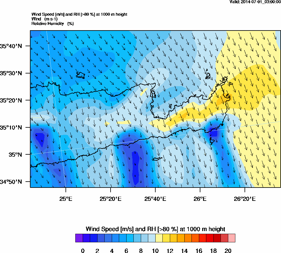 Graph 3: arw003.png - Wind Speed [m/s] and RH [>80%] at 1000 m height