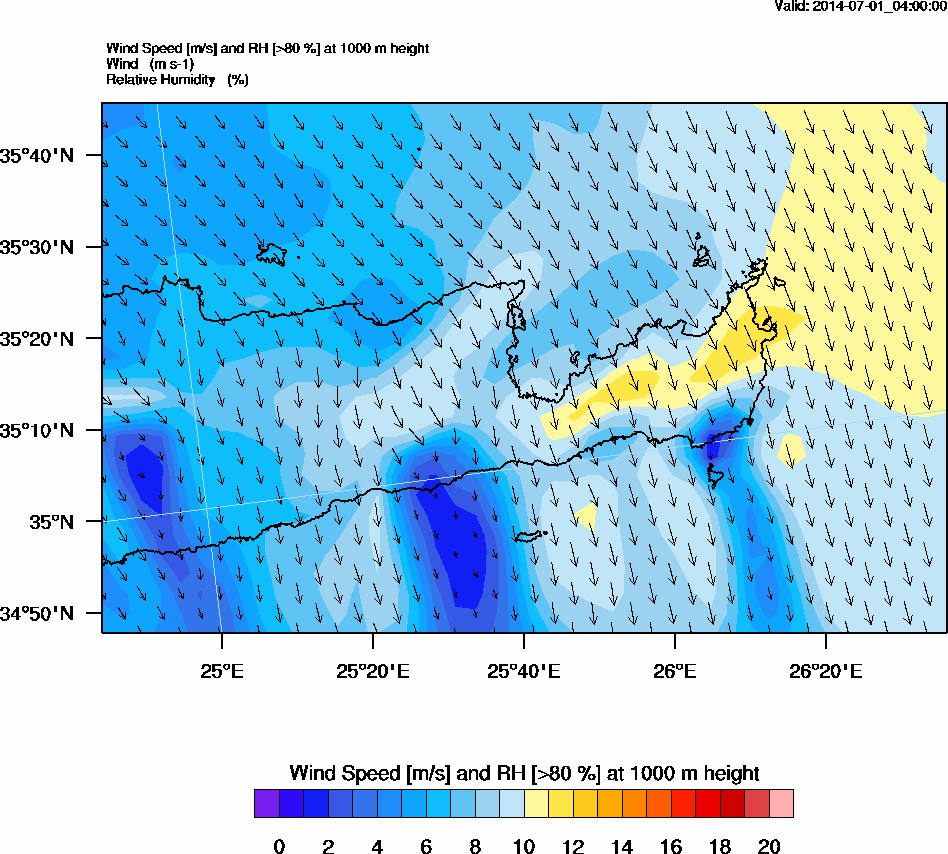 Graph 3: arw008.png - Wind Speed [m/s] and RH [>80%] at 1000 m height
