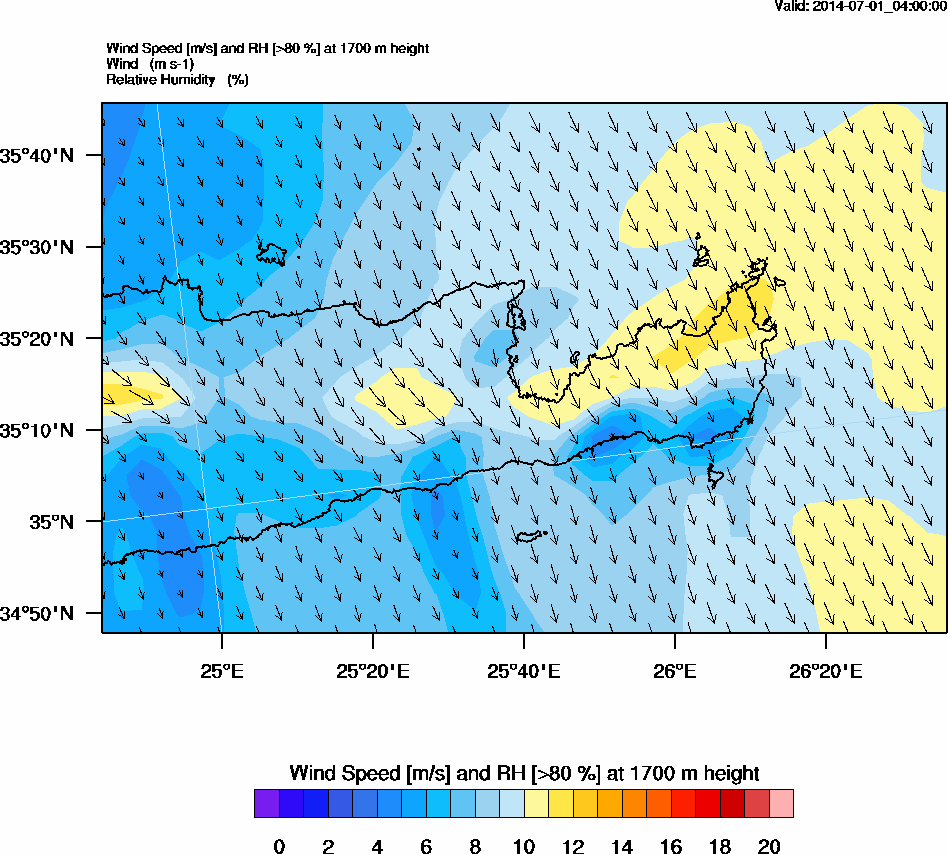 Graph 5: arw010.png - Wind Speed [m/s] and RH [>80%] at 1700 m height