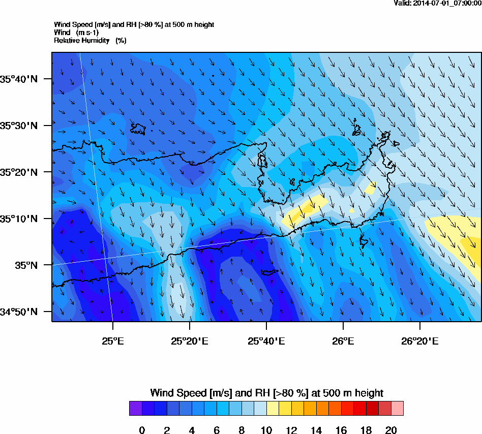 Graph 2: arw022.png - Wind Speed [m/s] and RH [>80%] at 500 m height