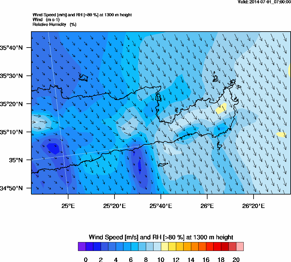 Graph 4: arw024.png - Wind Speed [m/s] and RH [>80%] at 1300 m height
