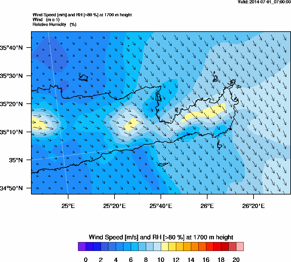 Graph 5: arw025.png - Wind Speed [m/s] and RH [>80%] at 1700 m height