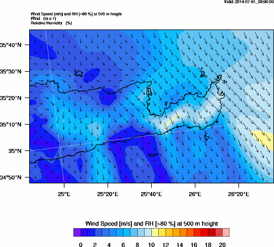 Graph 2: arw027.png - Wind Speed [m/s] and RH [>80%] at 500 m height