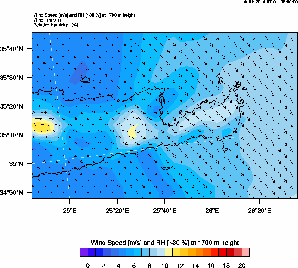 Graph 5: arw030.png - Wind Speed [m/s] and RH [>80%] at 1700 m height