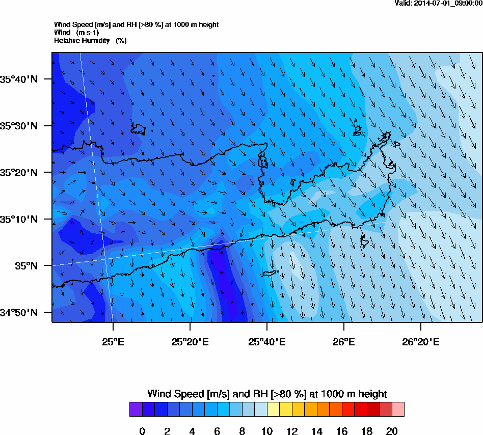 Graph 3: arw033.png - Wind Speed [m/s] and RH [>80%] at 1000 m height