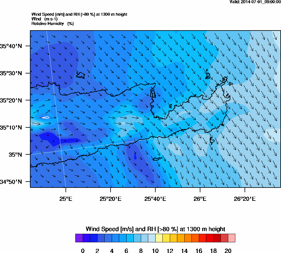 Graph 4: arw034.png - Wind Speed [m/s] and RH [>80%] at 1300 m height