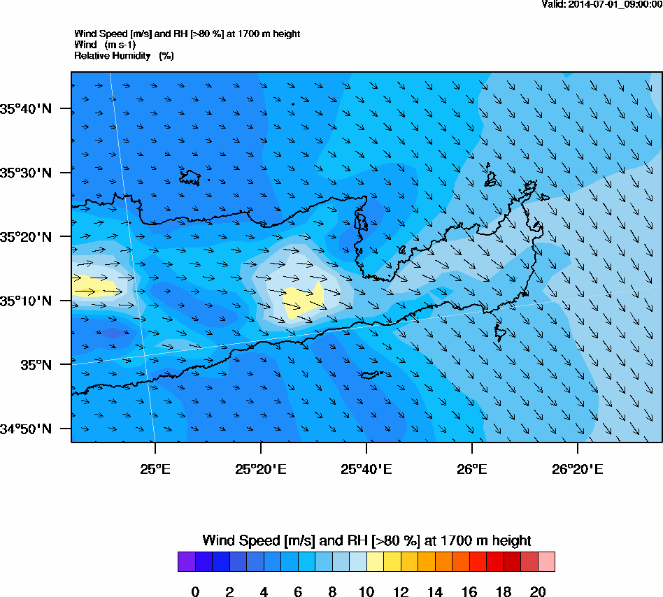 Graph 5: arw035.png - Wind Speed [m/s] and RH [>80%] at 1700 m height
