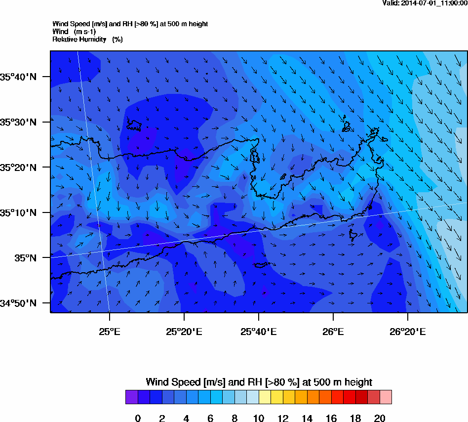 Graph 2: arw042.png - Wind Speed [m/s] and RH [>80%] at 500 m height