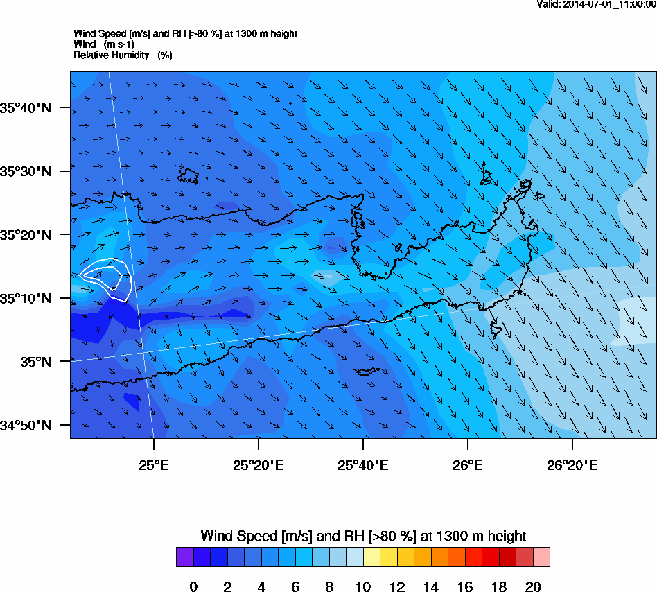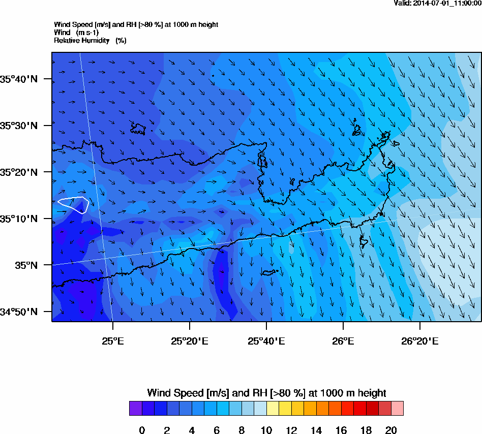 Graph 3: arw043.png - Wind Speed [m/s] and RH [>80%] at 1000 m height