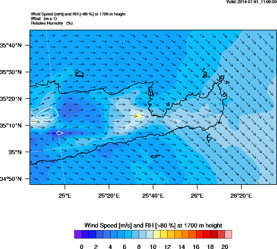 Graph 5: arw045.png - Wind Speed [m/s] and RH [>80%] at 1700 m height