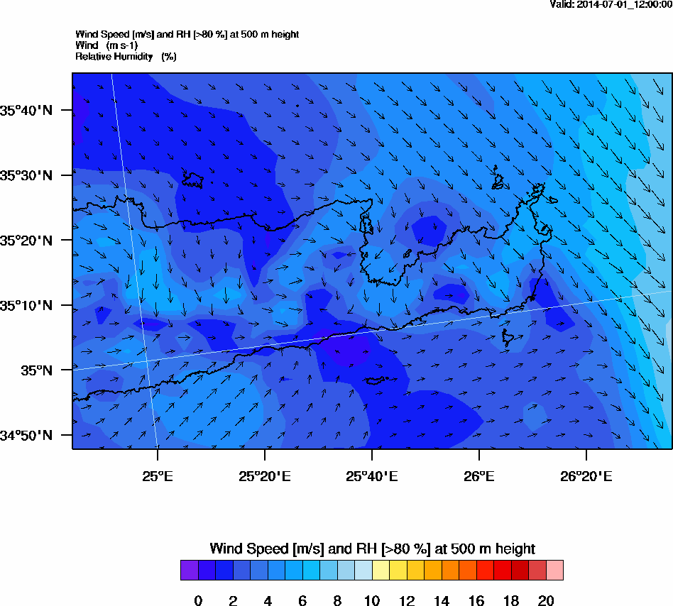 Graph 2: arw047.png - Wind Speed [m/s] and RH [>80%] at 500 m height