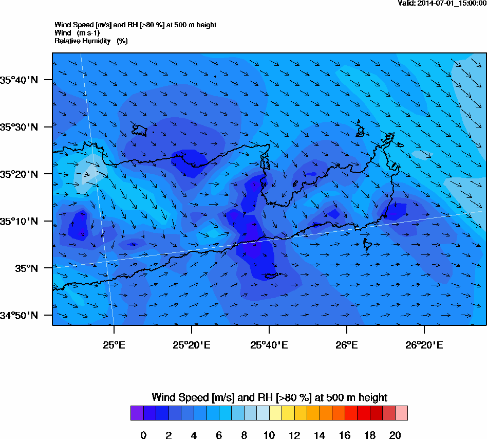 Graph 2: arw062.png - Wind Speed [m/s] and RH [>80%] at 500 m height