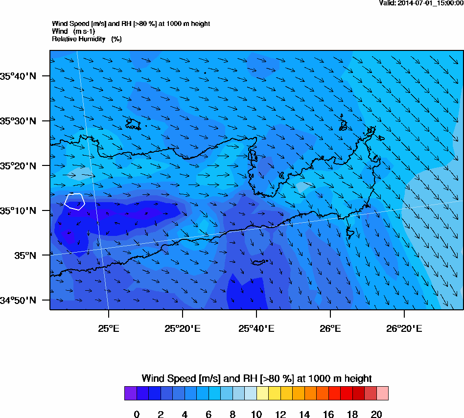 Graph 3: arw063.png - Wind Speed [m/s] and RH [>80%] at 1000 m height