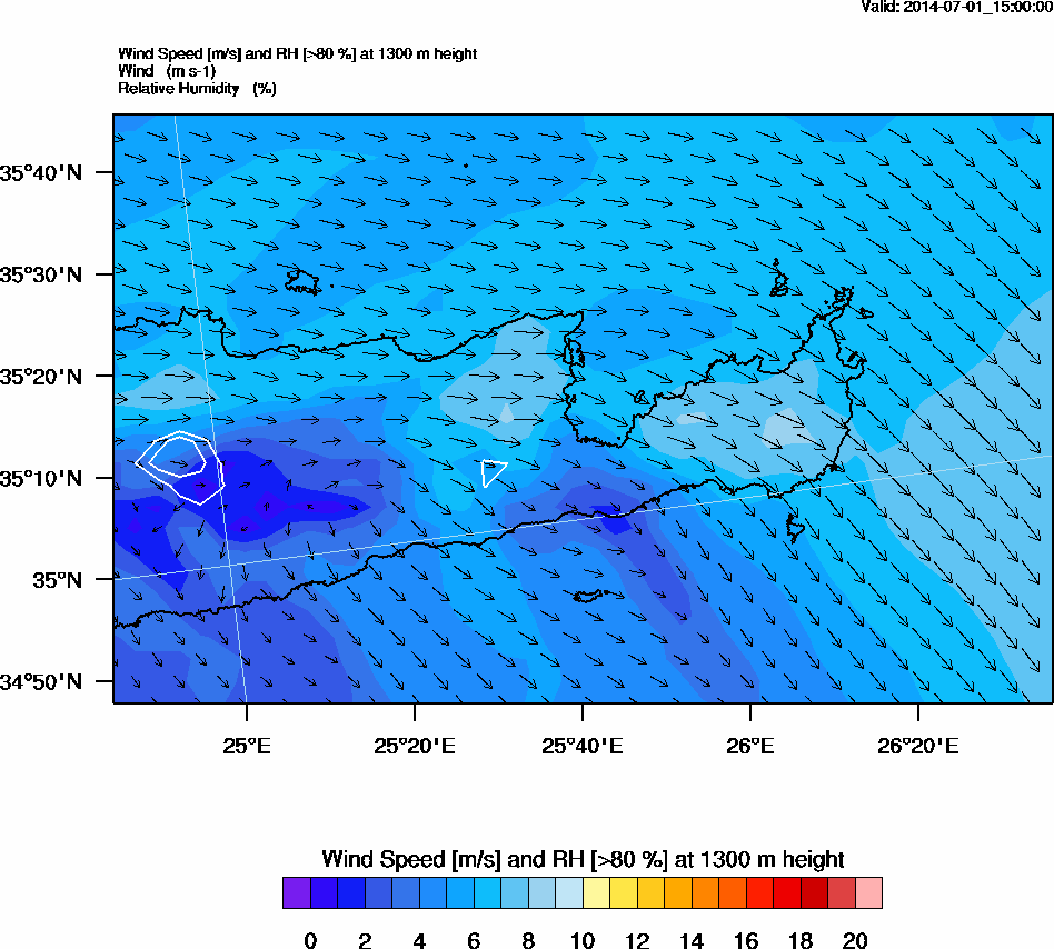 Graph 4: arw064.png - Wind Speed [m/s] and RH [>80%] at 1300 m height