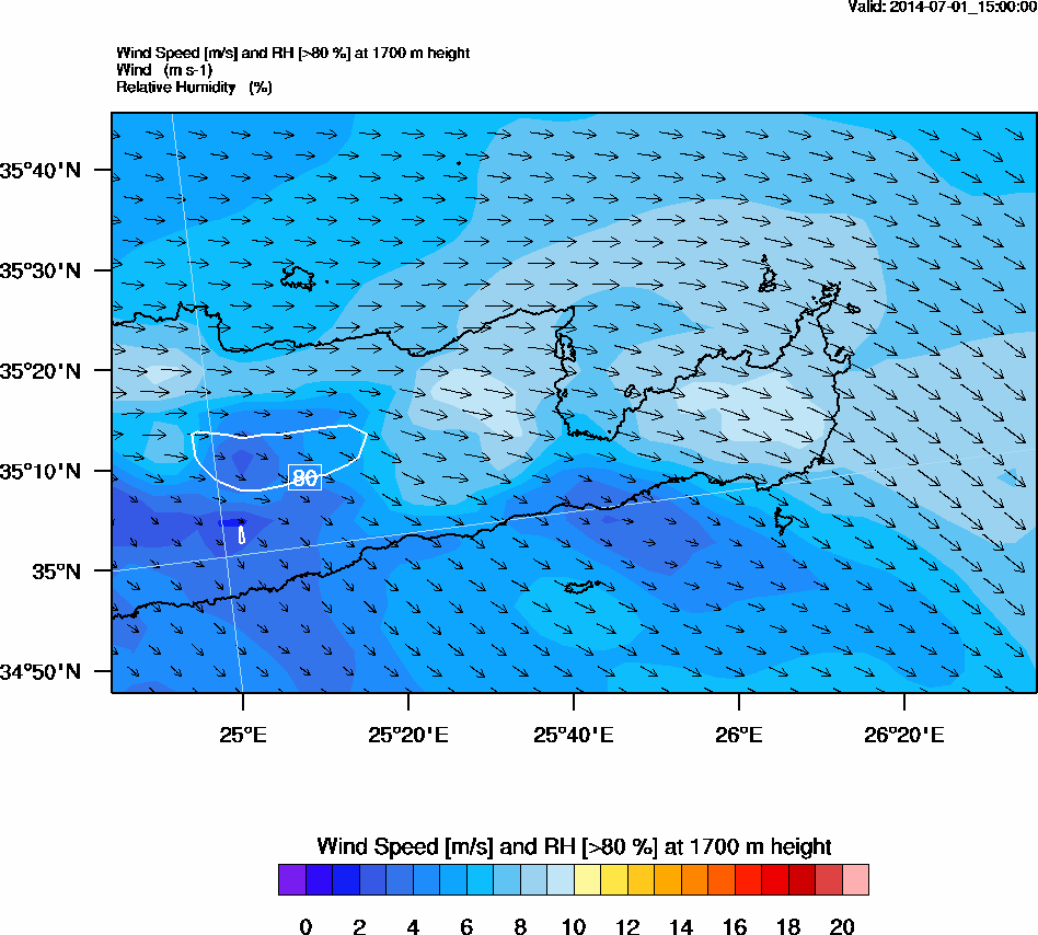 Graph 5: arw065.png - Wind Speed [m/s] and RH [>80%] at 1700 m height