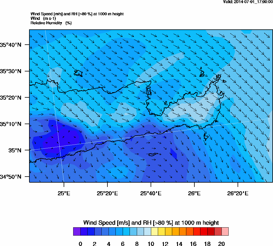 Graph 3: arw073.png - Wind Speed [m/s] and RH [>80%] at 1000 m height