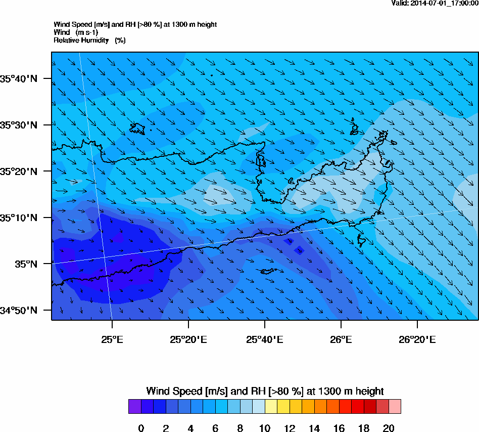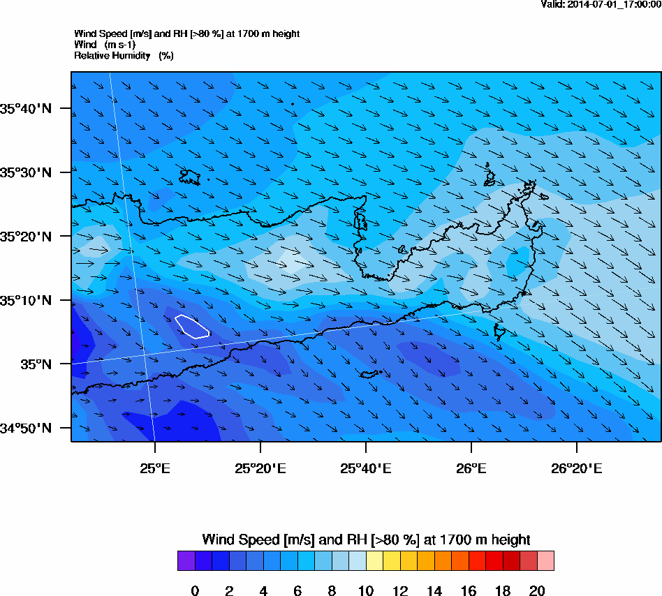 Graph 5: arw075.png - Wind Speed [m/s] and RH [>80%] at 1700 m height