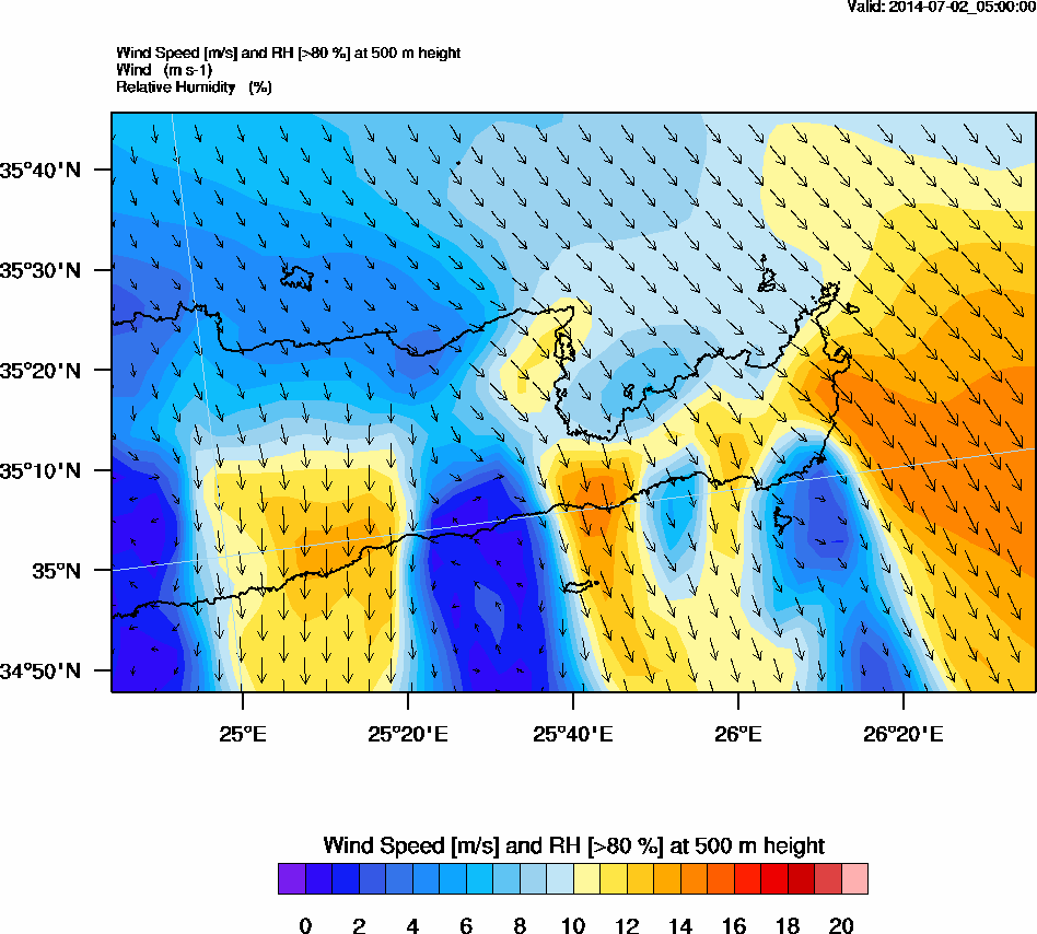 Graph 2: arw012.png - Wind Speed [m/s] and RH [>80%] at 500 m height