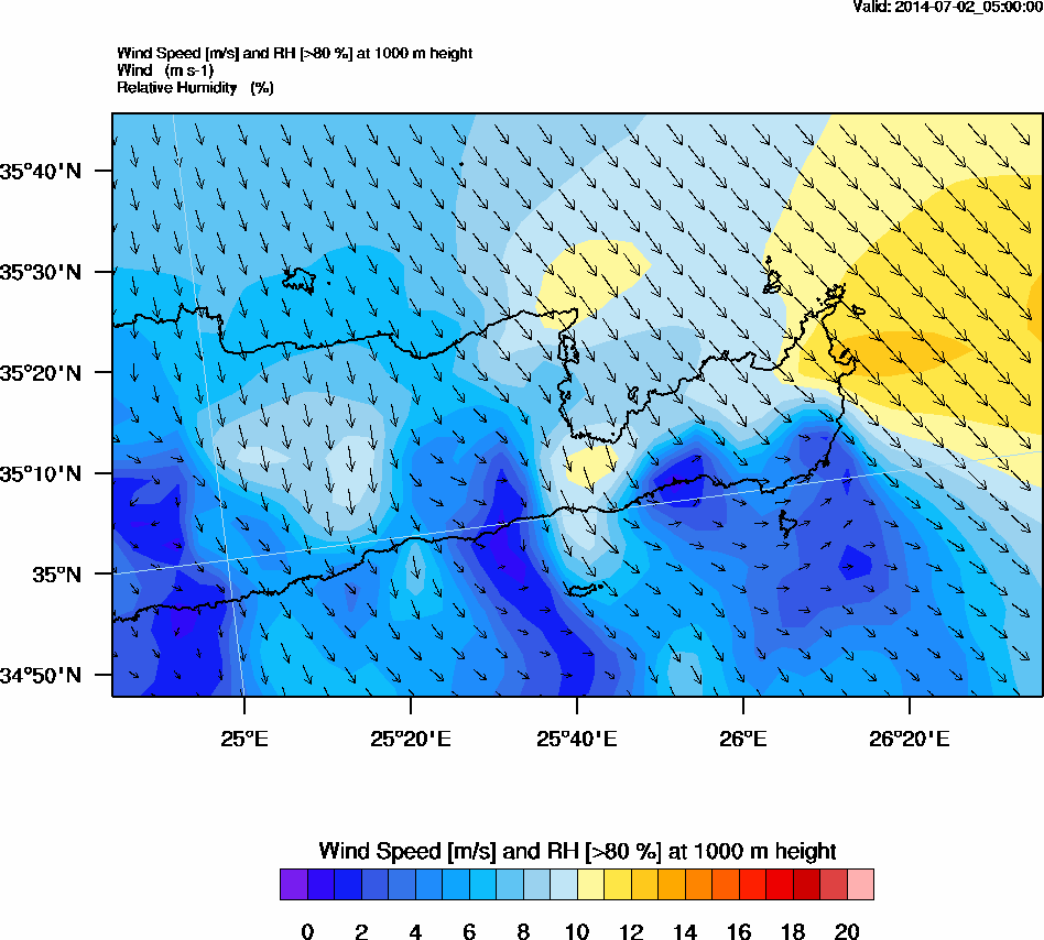 Graph 3: arw013.png - Wind Speed [m/s] and RH [>80%] at 1000 m height