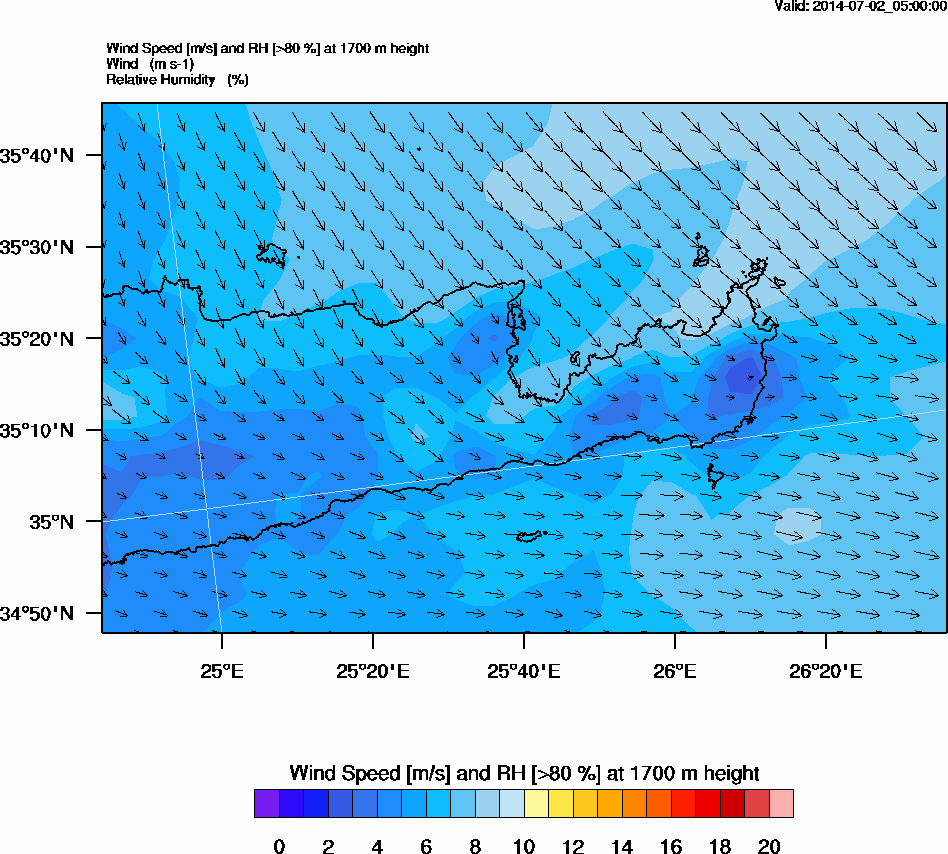 Graph 5: arw015.png - Wind Speed [m/s] and RH [>80%] at 1700 m height