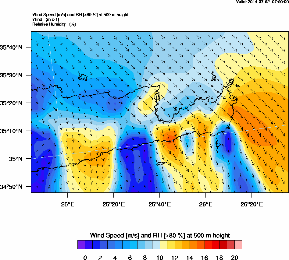Graph 2: arw022.png - Wind Speed [m/s] and RH [>80%] at 500 m height