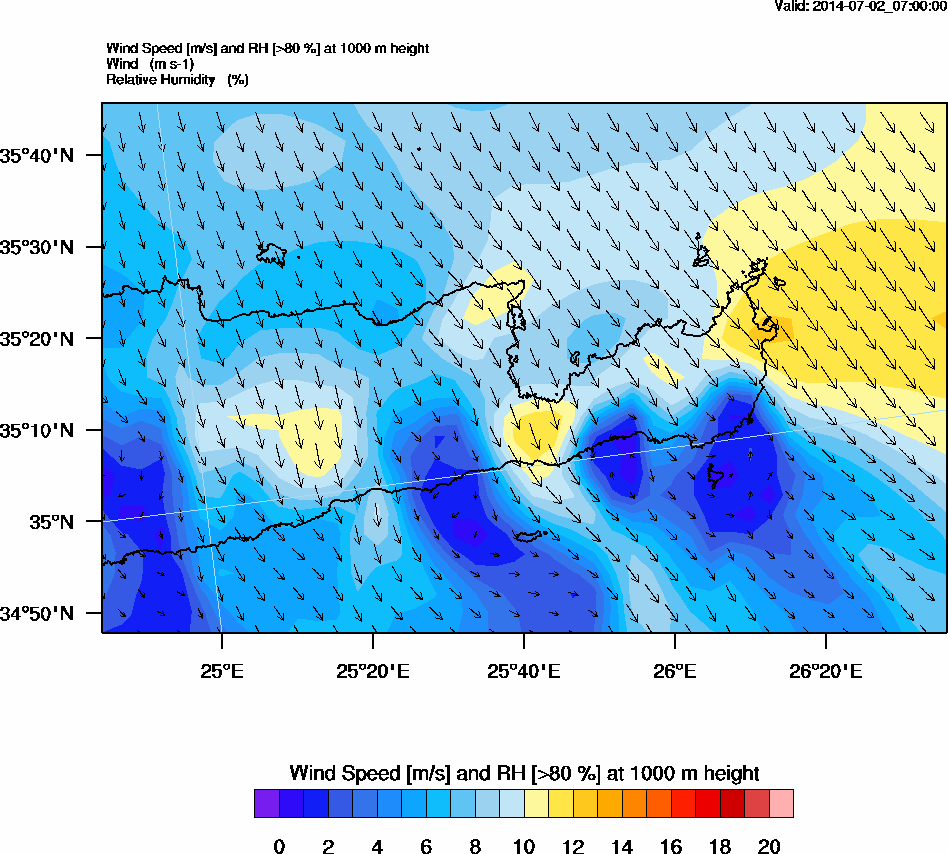 Graph 3: arw023.png - Wind Speed [m/s] and RH [>80%] at 1000 m height