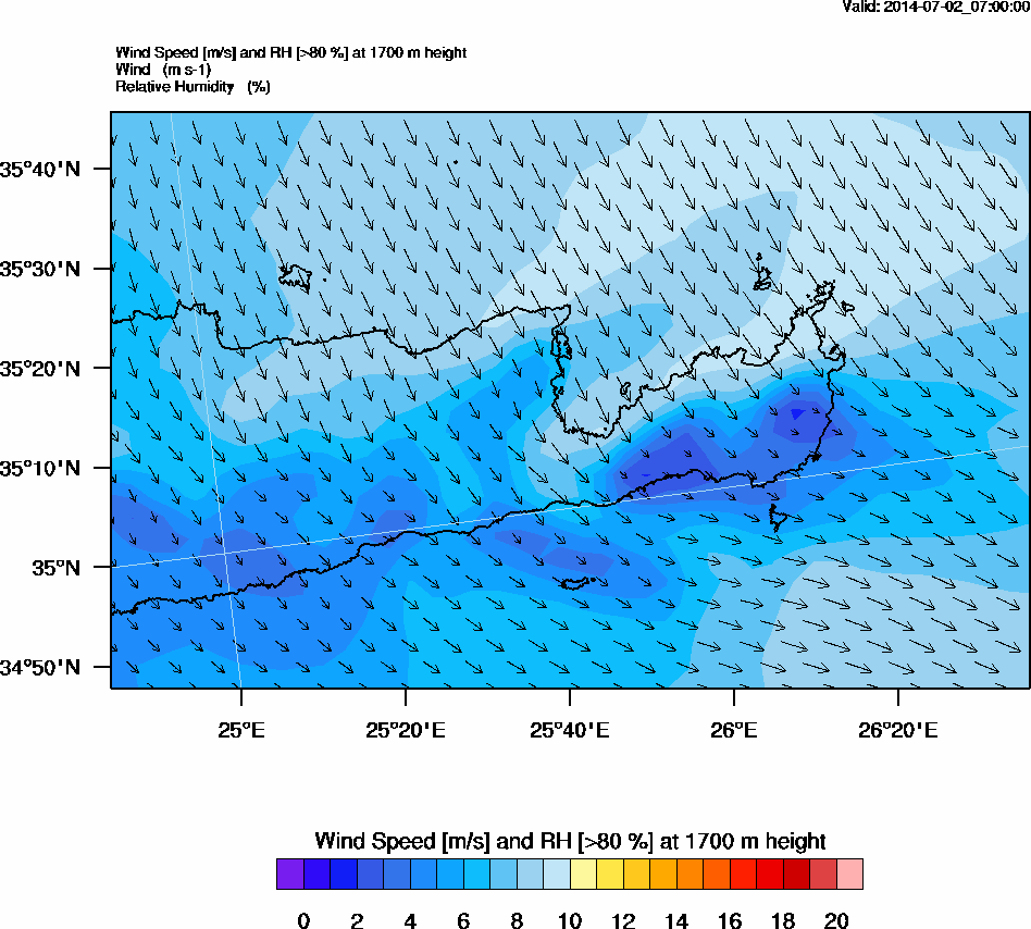 Graph 5: arw025.png - Wind Speed [m/s] and RH [>80%] at 1700 m height