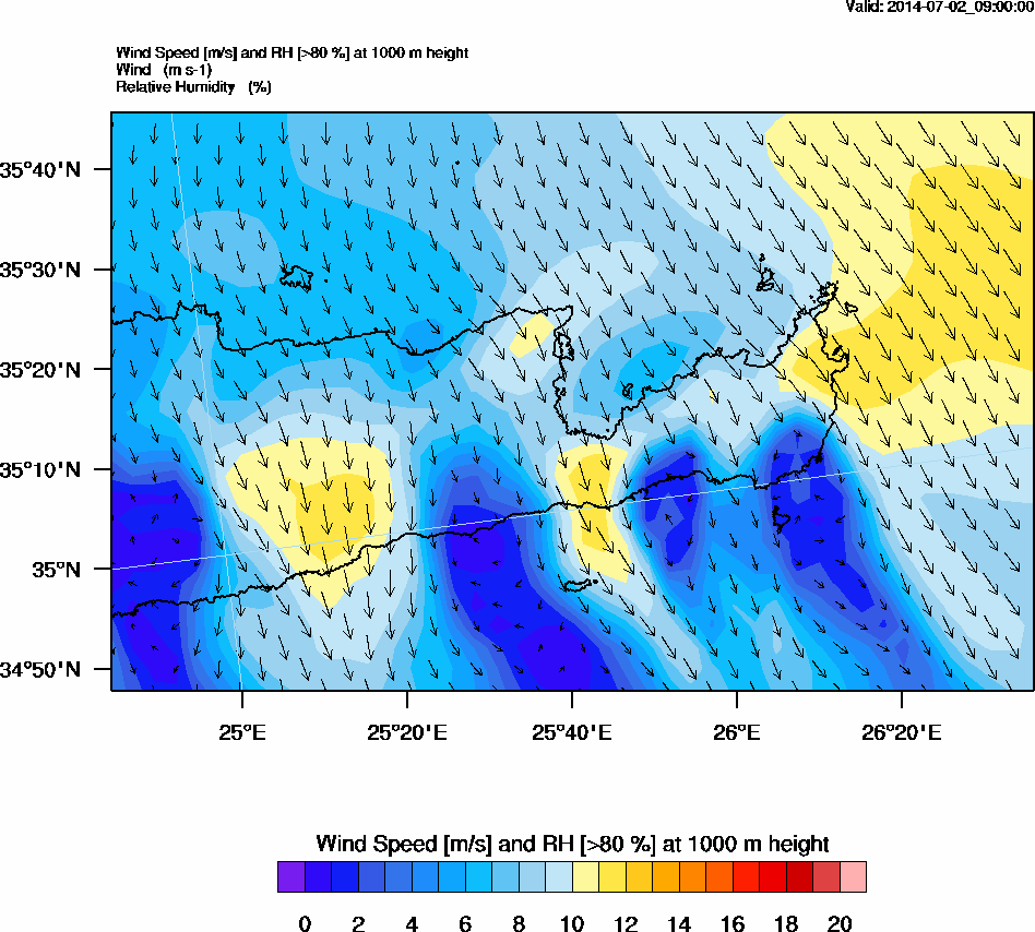 Graph 3: arw033.png - Wind Speed [m/s] and RH [>80%] at 1000 m height