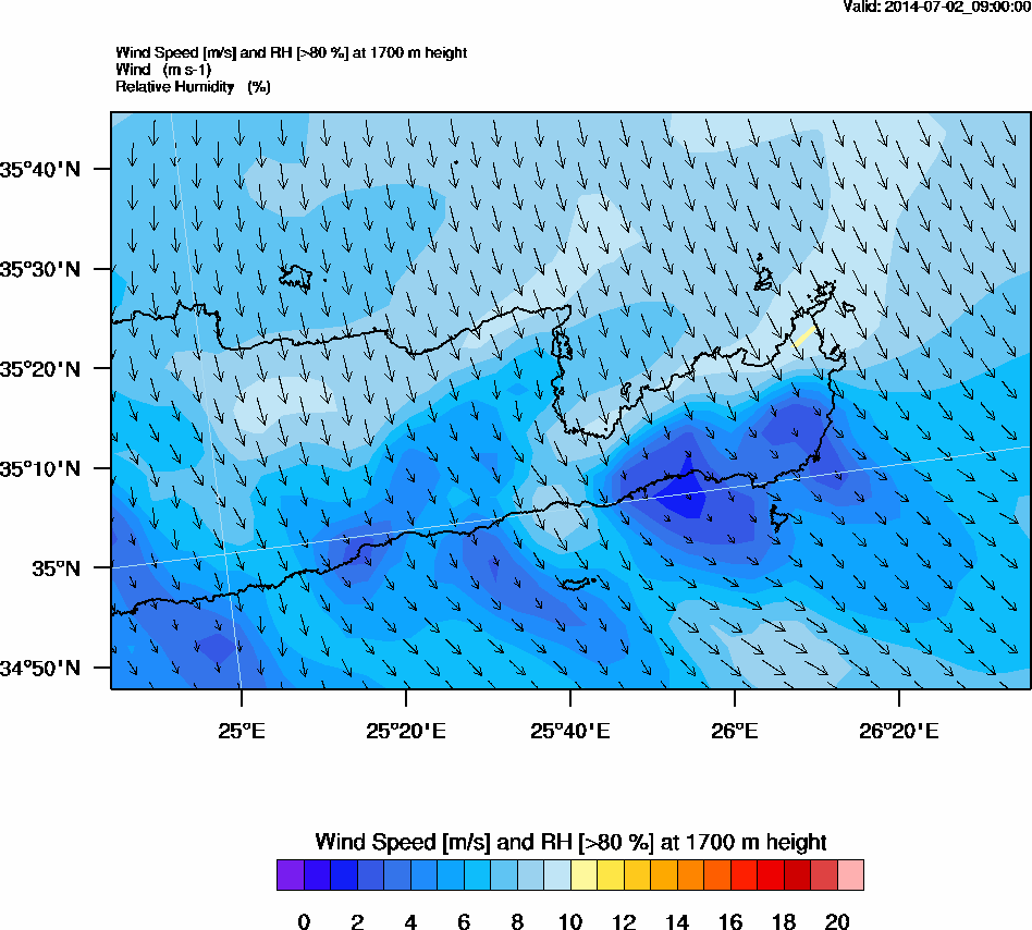 Graph 5: arw035.png - Wind Speed [m/s] and RH [>80%] at 1700 m height