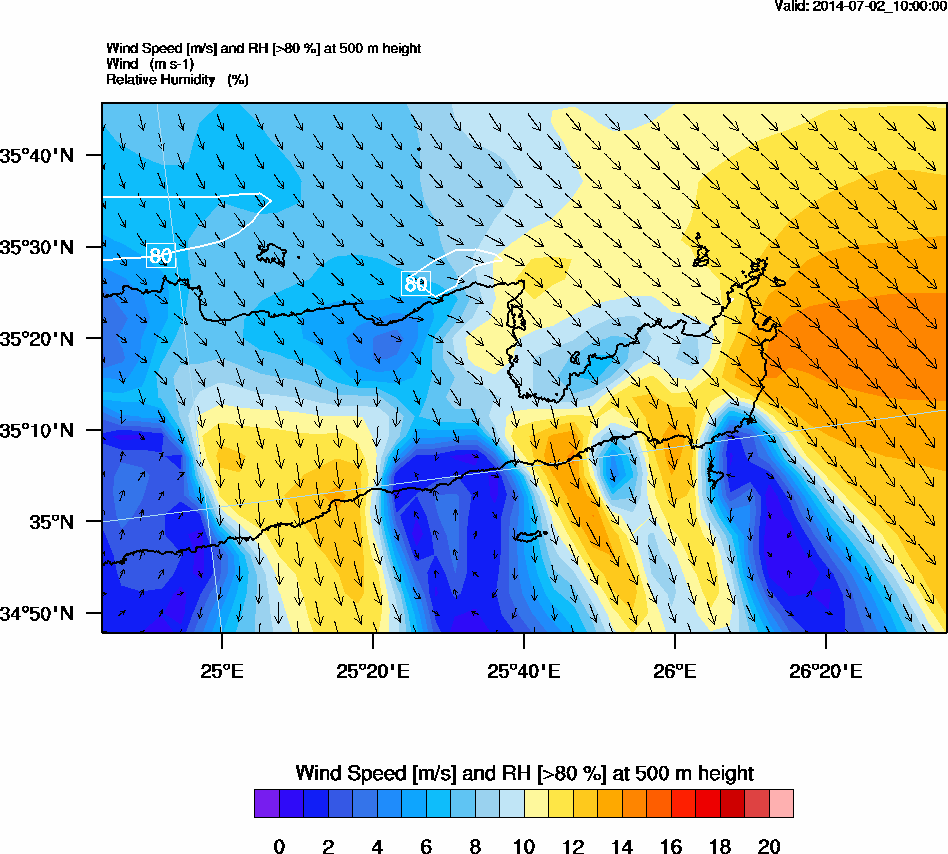 Graph 2: arw037.png - Wind Speed [m/s] and RH [>80%] at 500 m height