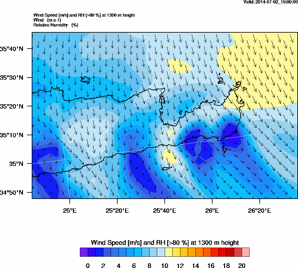 Graph 4: arw039.png - Wind Speed [m/s] and RH [>80%] at 1300 m height
