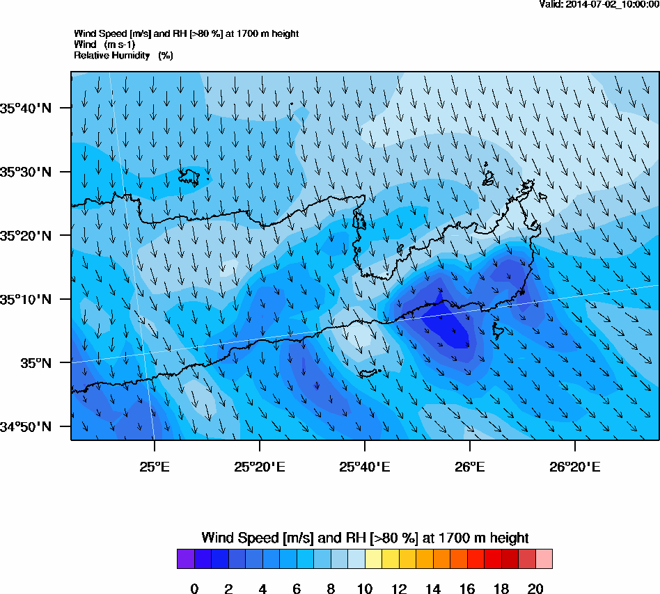 Graph 5: arw040.png - Wind Speed [m/s] and RH [>80%] at 1700 m height