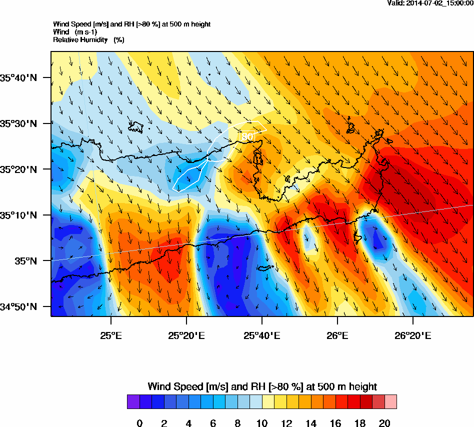 Graph 2: arw062.png - Wind Speed [m/s] and RH [>80%] at 500 m height