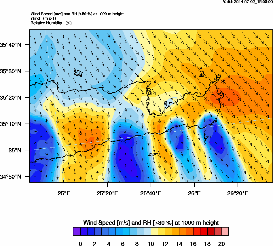 Graph 3: arw063.png - Wind Speed [m/s] and RH [>80%] at 1000 m height