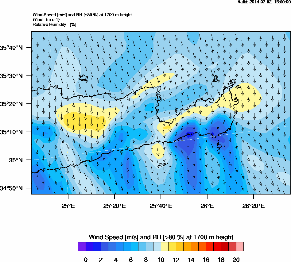 Graph 5: arw065.png - Wind Speed [m/s] and RH [>80%] at 1700 m height