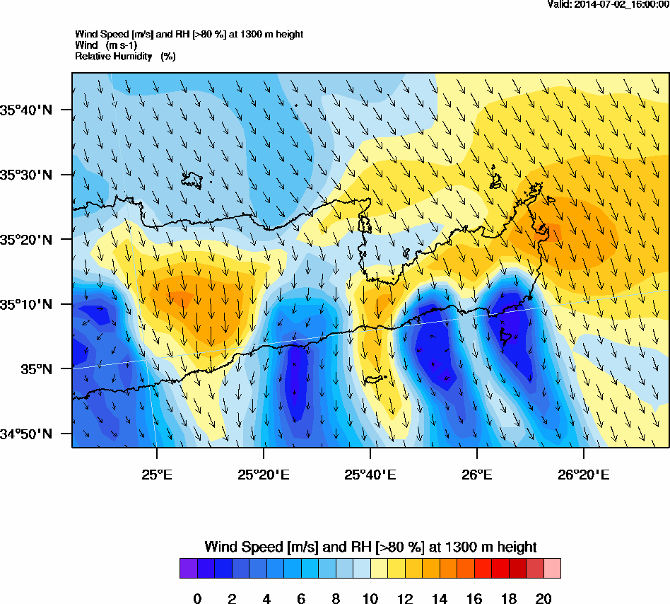 Graph 4: arw069.png - Wind Speed [m/s] and RH [>80%] at 1300 m height