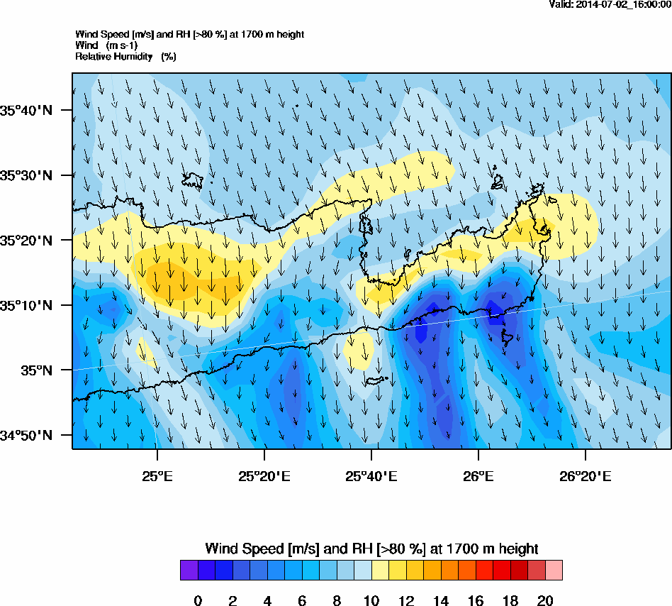 Graph 5: arw070.png - Wind Speed [m/s] and RH [>80%] at 1700 m height
