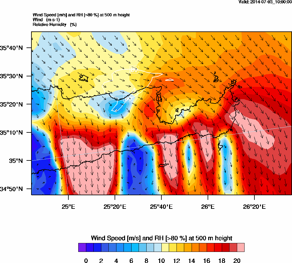 Graph 2: arw037.png - Wind Speed [m/s] and RH [>80%] at 500 m height