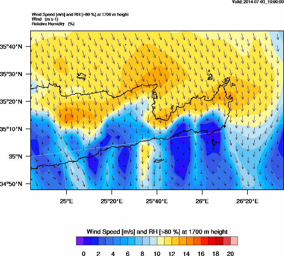 Graph 5: arw040.png - Wind Speed [m/s] and RH [>80%] at 1700 m height