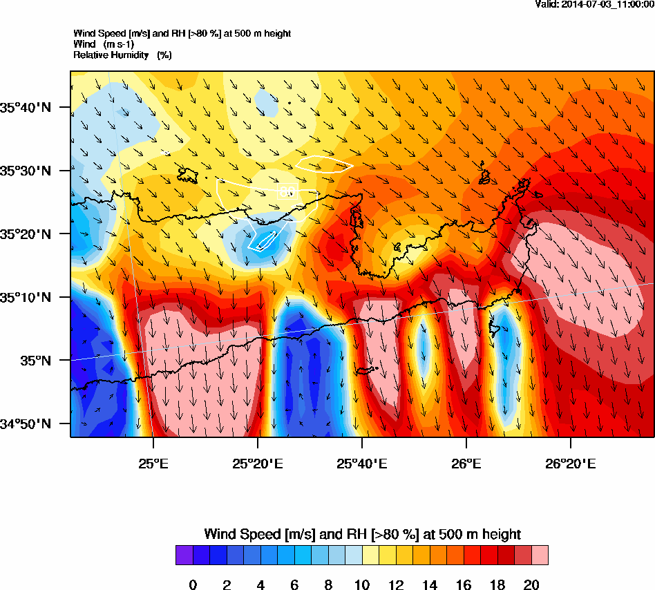 Graph 2: arw042.png - Wind Speed [m/s] and RH [>80%] at 500 m height