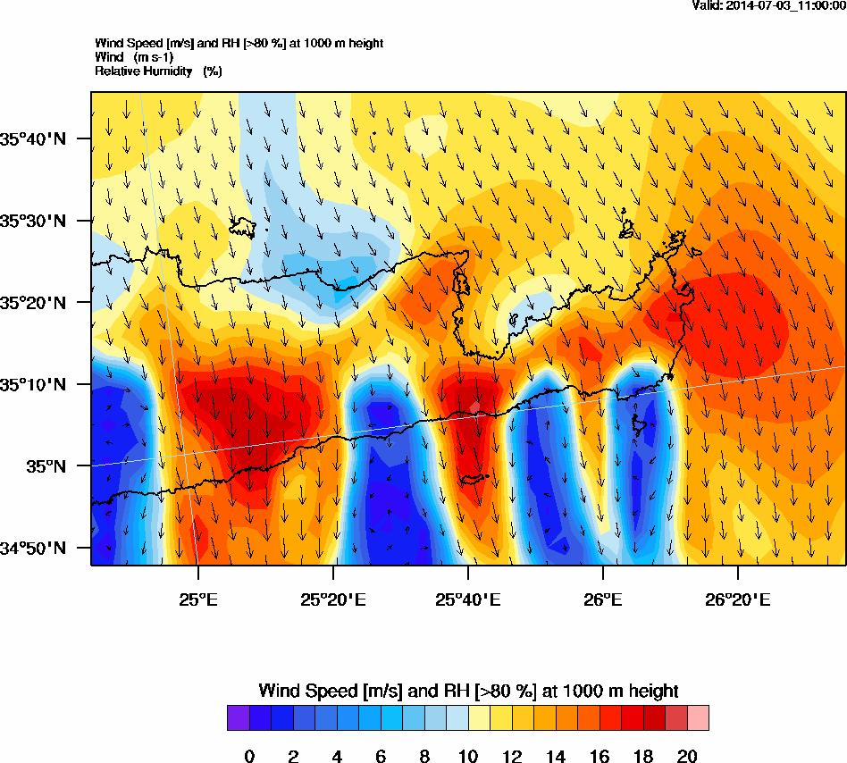 Graph 3: arw043.png - Wind Speed [m/s] and RH [>80%] at 1000 m height