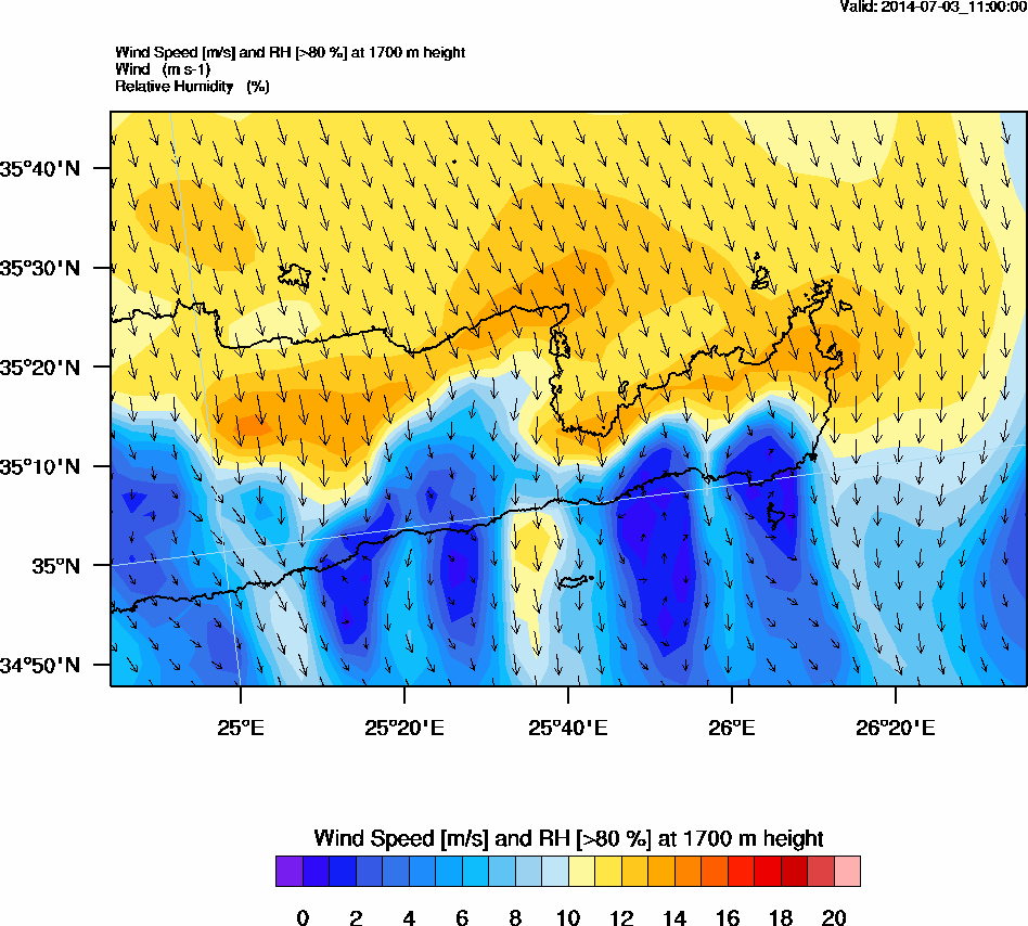 Graph 5: arw045.png - Wind Speed [m/s] and RH [>80%] at 1700 m height