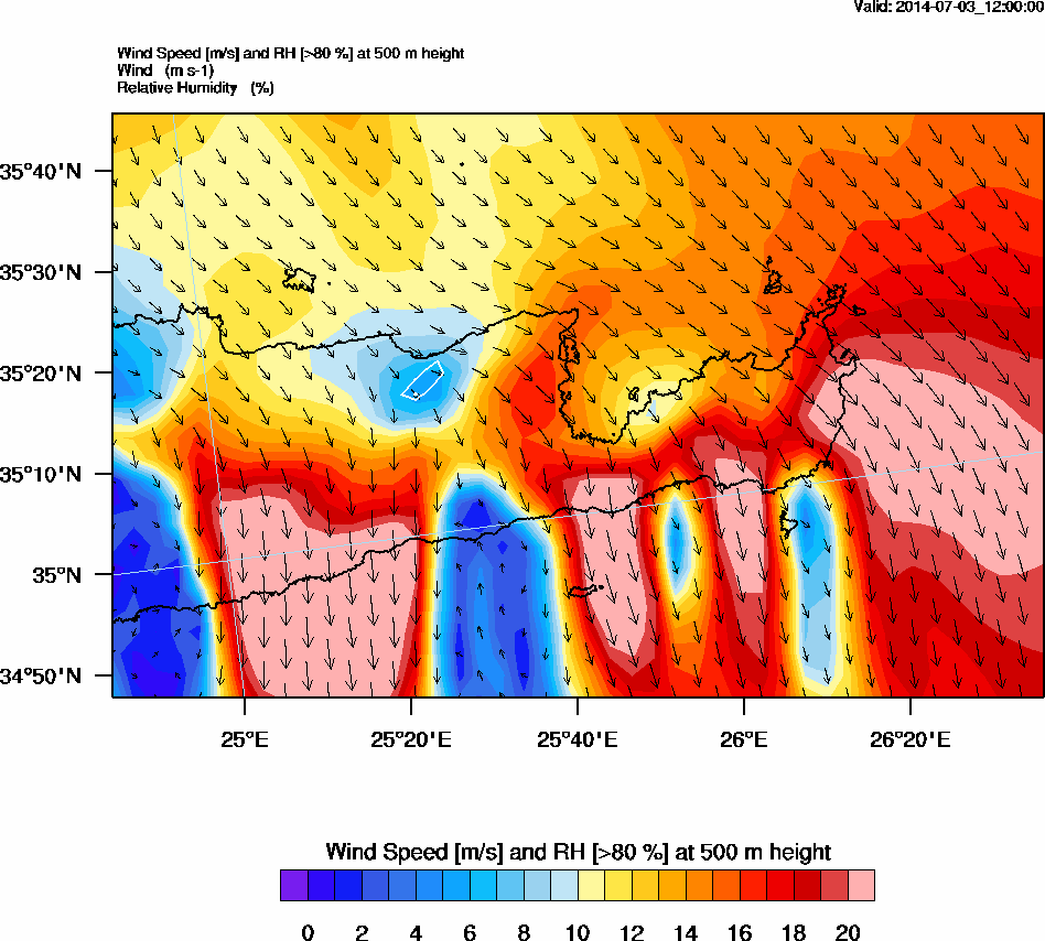 Graph 2: arw047.png - Wind Speed [m/s] and RH [>80%] at 500 m height