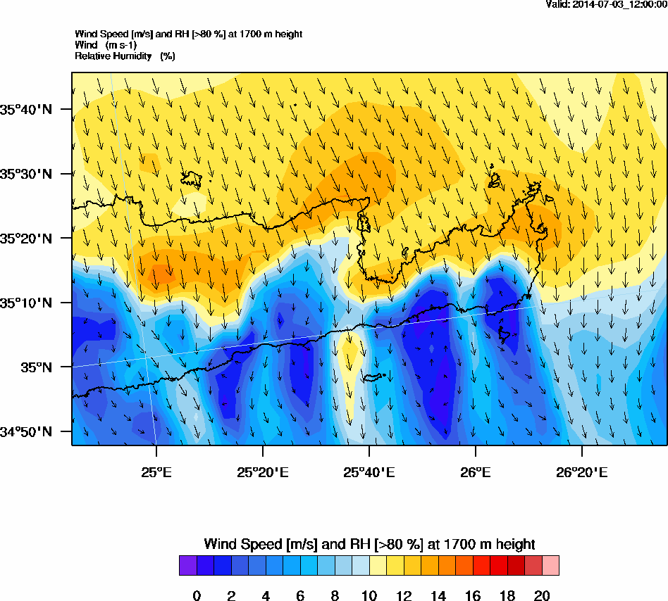 Graph 5: arw050.png - Wind Speed [m/s] and RH [>80%] at 1700 m height