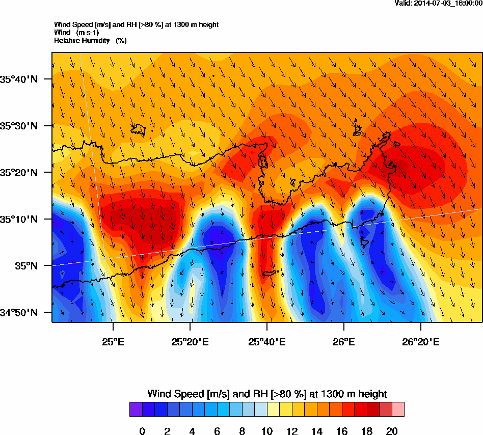 Graph 4: arw069.png - Wind Speed [m/s] and RH [>80%] at 1300 m height