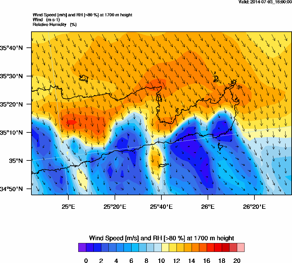 Graph 5: arw070.png - Wind Speed [m/s] and RH [>80%] at 1700 m height