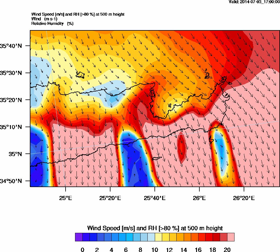 Graph 2: arw072.png - Wind Speed [m/s] and RH [>80%] at 500 m height