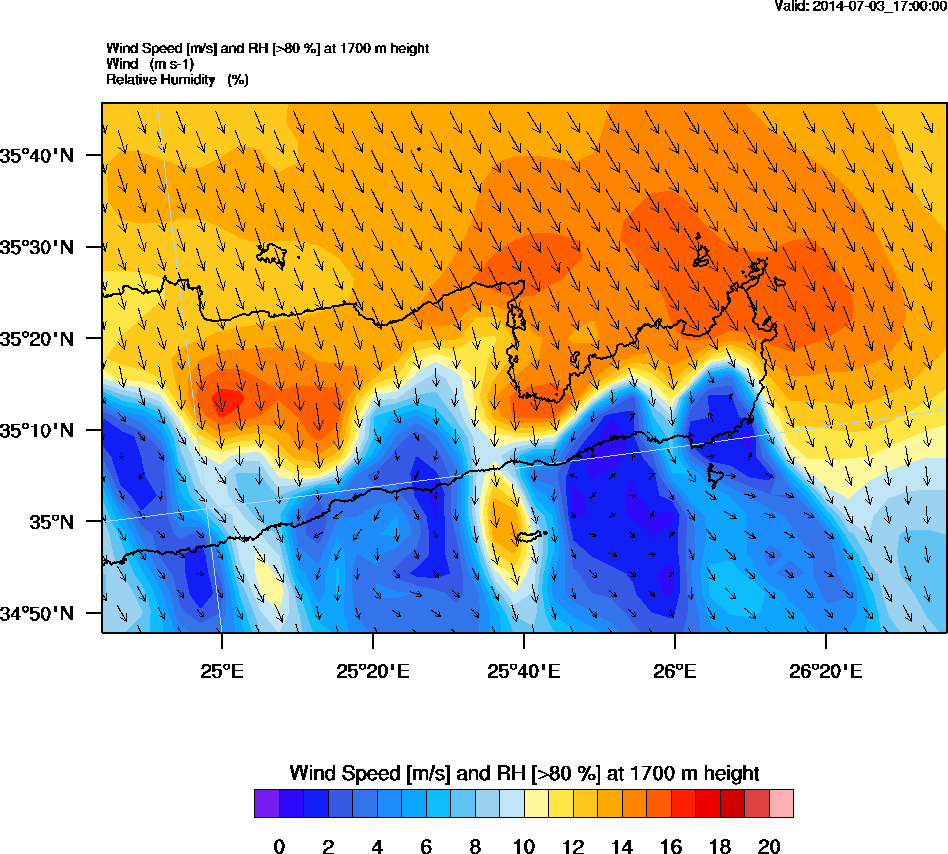 Graph 5: arw075.png - Wind Speed [m/s] and RH [>80%] at 1700 m height